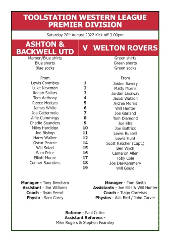 Saturday 20 August 2022 Kick off 3.00pm