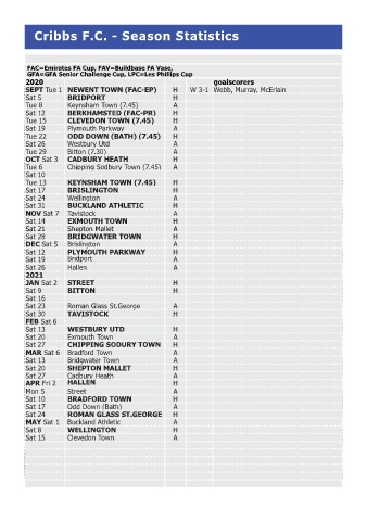 SEPT Tue 1 NEWENT TOWN (FAC-EP) H W 3-1 Webb, Murray, McErlain