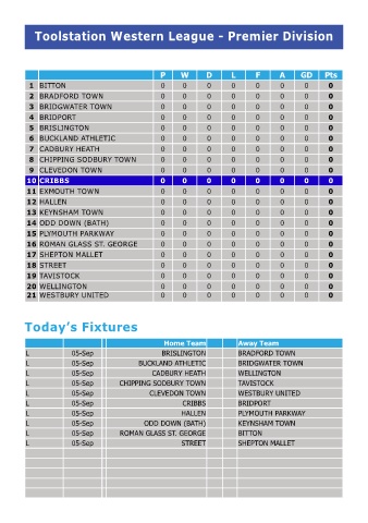 L 05-Sep BUCKLAND ATHLETIC BRIDGWATER TOWN