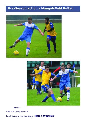 Pre-Season action v Mangotsfield United Photos - www.bristol soccerworld.com Front cover photo courtesy of Helen Warwick
