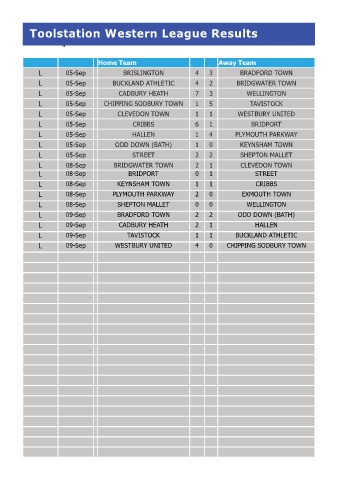 L 05-Sep CLEVEDON TOWN 1 1 WESTBURY UNITED