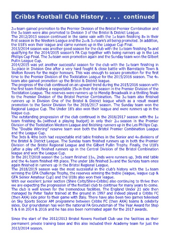 Division of the Bristol Regional League and the Gilbert Pullin Trophy. Finally, the U18’s