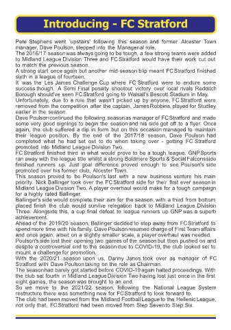 priority. Nick Ballinger took over the FC Stratford side for their first ever season in