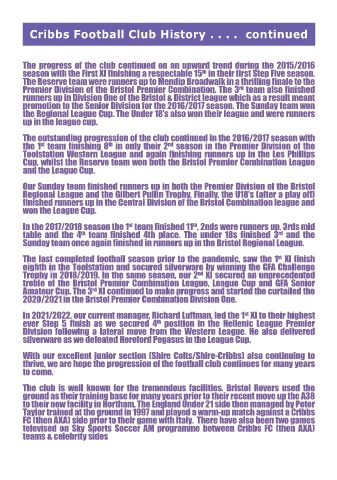 Cribbs Football Club History . . . . continued
