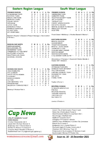 WROXHAM 10 5 1 4 24 18 16 FOREST GREEN ROVERS 9 4 1 4 33 22 13