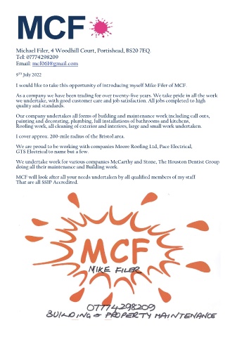 Michael Filer, 4 Woodhill Court, Portishead, BS20 7EQ.