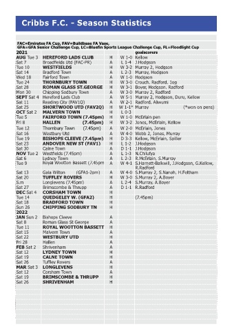 Mon 30 Chipping Sodbury Town A W 3-0 Murray 2, Radford
