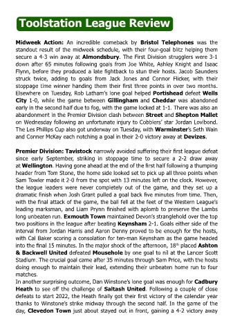 Elsewhere on Tuesday, Rob Latham’s lone goal helped Portishead defeat Wells