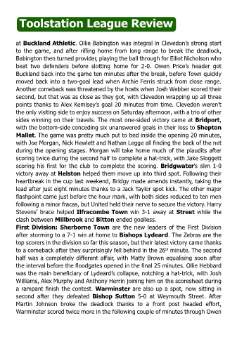 a rampant finish the contest. Warminster are also up a spot, now sitting in