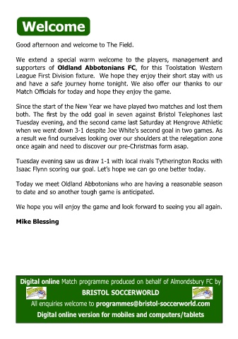 Digital online Match programme produced on behalf of Almondsbury FC by