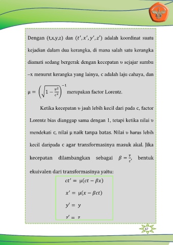 Dengan (t,x,y,z) dan , , , ′ adalah koordinat suatu