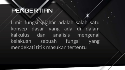 PENGERTIAN Limit fungsi aljabar adalah salah satu konsep dasar yang ada di dalam kalkulus dan analisis mengenai kelakuan sebuah fungsi yang mendekati titik masukan tertentu