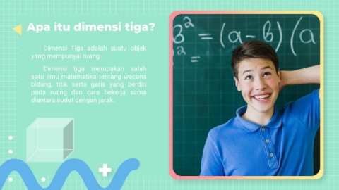 Apa itu dimensi tiga? Dimensi Tiga adalah suatu objek yang mempunyai ruang Dimensi tiga merupakan salah satu ilmu matematika tentang wacana bidang, titik serta garis yang berdiri pada ruang dan cara bekerja sama diantara sudut dengan jarak.
