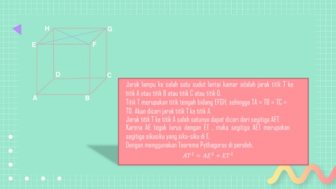 Jarak lampu ke salah satu sudut lantai kamar adalah jarak titik T ke