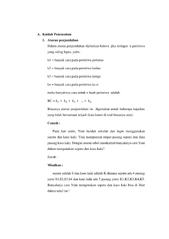 Dalam aturan penjumlahan dijelaskan bahwa jika terdapat n peristiwa