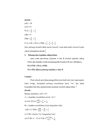 Jadi, peluang terambil dadu merah muncul 3 atau dadu putih muncul 4 pada