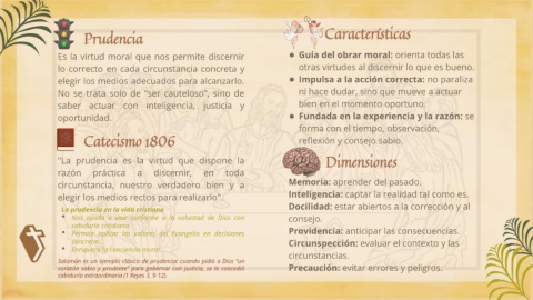 • Permite aplicar los valores del Evangelio en decisiones Providencia: anticipar las consecuencias.