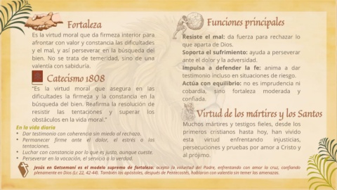 • Permanecer firme ante el dolor, el estrés o las esta virtud enfrentando injusticias,
