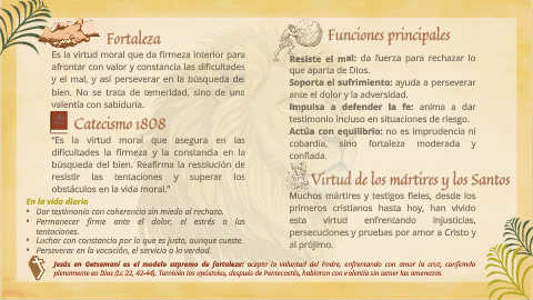 • Permanecer firme ante el dolor, el estrés o las esta virtud enfrentando injusticias,