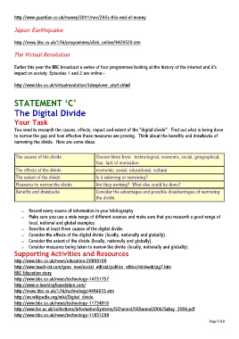 o Consider the effects of the digital divide (locally, nationally and globally).