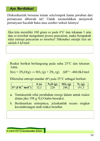 nilai entropi pencairan es tersebut! Diketahui entalpi fusi air