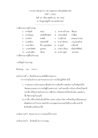 รายงานการประชม PLC ของ กลุมสาระการเรียนรูคณิตศาสตร