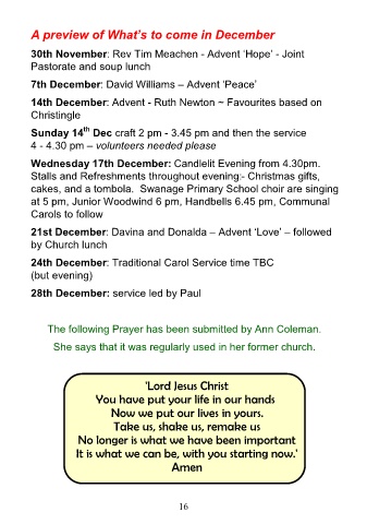 Sunday 14 Dec craft 2 pm - 3.45 pm and then the service