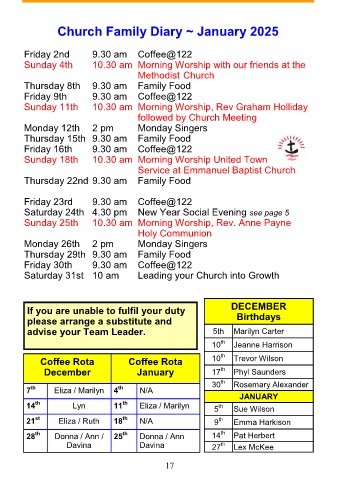 Saturday 24th 4.30 pm New Year Social Evening see page 5