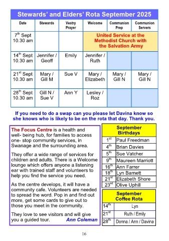 Stewards’ and Elders’ Rota September 2025