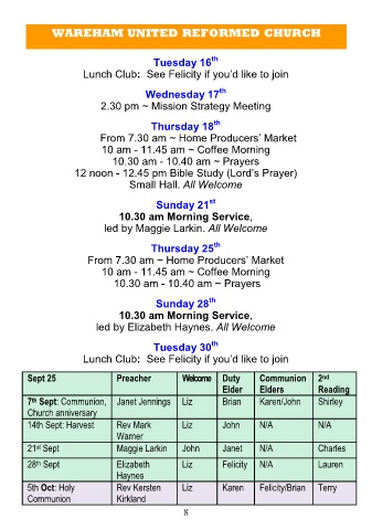 14th Sept: Harvest Rev Mark Liz John N/A N/A