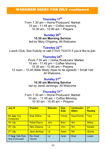 WAREHAM DIARY FOR JULY continued