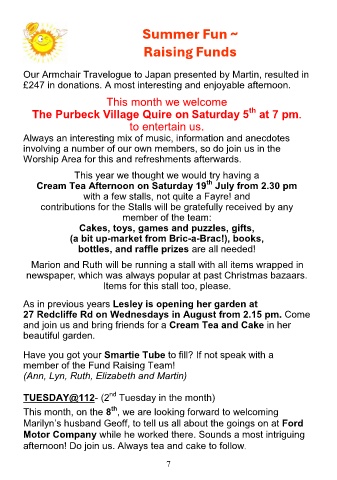 Cream Tea Afternoon on Saturday 19 July from 2.30 pm