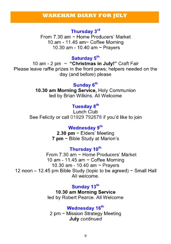 WAREHAM DIARY FOR JULY