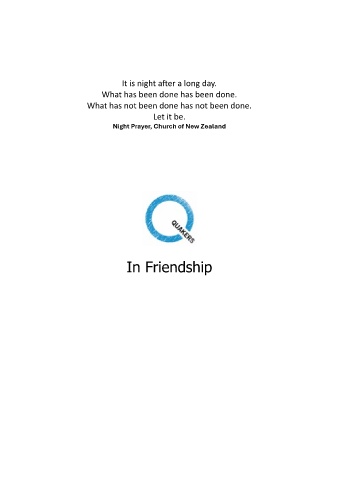 It is night after a long day. What has been done has been done. What has not been done has not been done. Let it be. Night Prayer, Church of New Zealand In Friendship