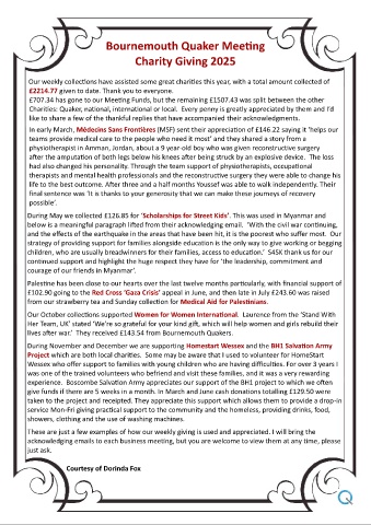 Charities: Quaker, national, international or local. Every penny is greatly appreciated by them and I’d