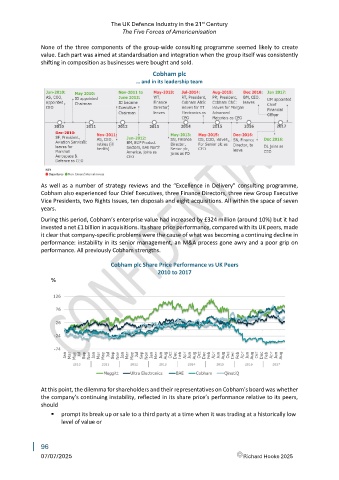 Cobham also experienced four Chief Executives, three Finance Directors, three new Group Executive