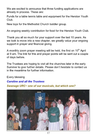A monthly zoom prayer meeting will be held, the first on 10 April