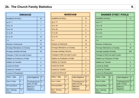 SKINNER STRET, POOLE NUMERS ON ROLL Number of Adherents Average Attendance on Sunday Average weekday Worship Changes in Roll over past 5 years Addition by Profession of Faith Addition by Transfer Losses by Death Losses by Transfer Losses by Resignation 6 Within 1 Mile 7 Over 3 miles Birth of Child 4 Serving Elders Believers Baptisms 3 Non– Serving