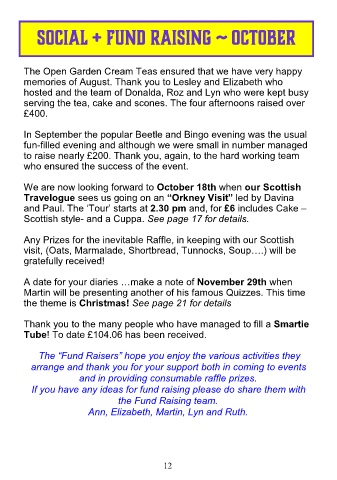 The “Fund Raisers” hope you enjoy the various activities they