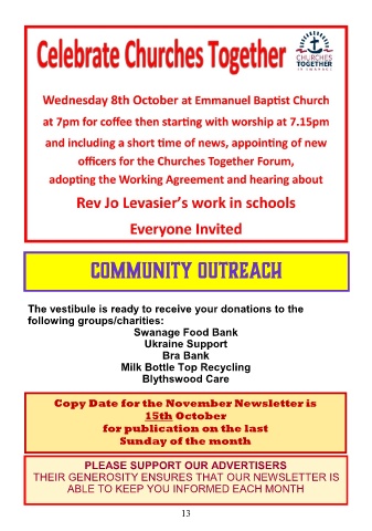 Copy Date for the November Newsletter is