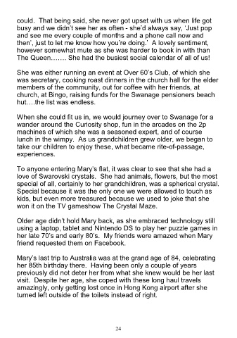 busy and we didn’t see her as often - she’d always say, ‘Just pop