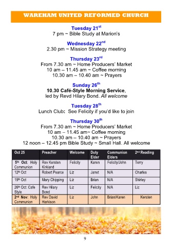 Oct 25 Preacher Welcome Duty Communion 2 Reading
