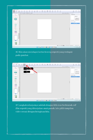 16. Kita akan mendapat kertas kosong seperti yang terdapat pada gambar. 17. Langkah selanjutnya adalah dengan klik icon berbentuk roll film seperti yang ditunjukan anak panah, lalu pilih tampilan video sesuai dengan keinginan kita.