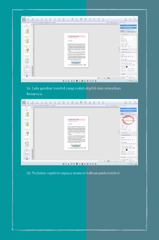24. Lalu gambar tombol yang sudah dipilih dan sesuaikan besarnya. 25. Tuliskan caption supaya muncul tulisan pada tombol.