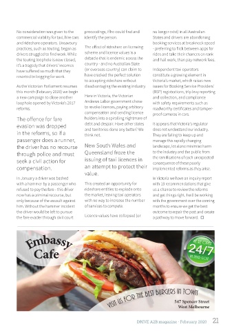 As the Victorian Parliament resumes disadvantaging the existing industry. issues for Booking Service Providers'
