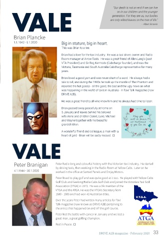 Peter Branigan Peter had a long and colourful history with the Victorian taxi industry. He started