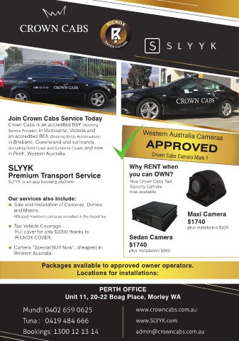 Mundi: 0402 659 0625 www.crowncabs.com.au