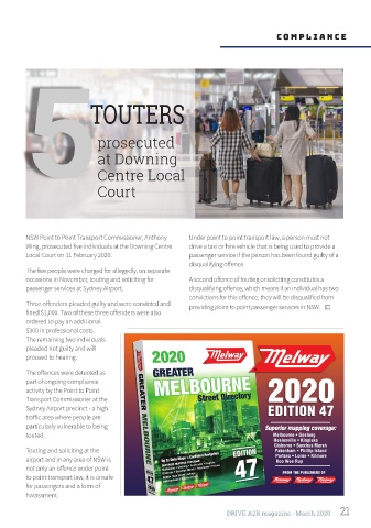 Wing, prosecuted five individuals at the Downing Centre drive a taxi or hire vehicle that is being used to provide a