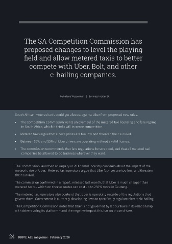 • The Competition Commission wants an overhaul of the metered taxi licencing and fare regime
