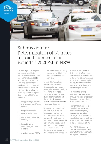 (TfNSW) to determine, by 31 In 2019, TfNSW made the the incumbent taxi industry